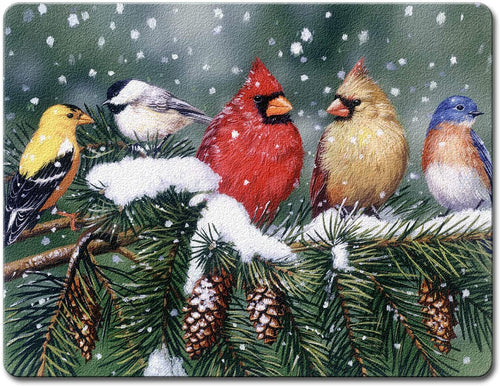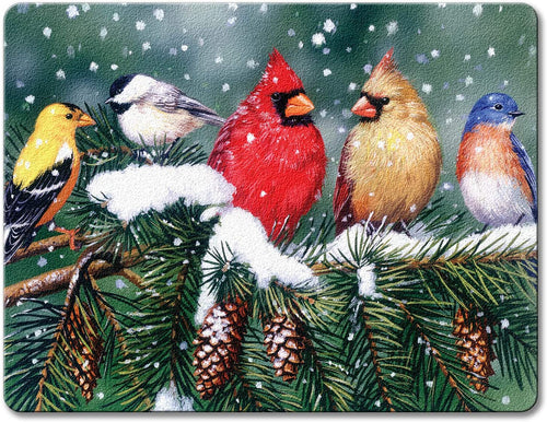 Backyard Birds Cardinals Finches Glass 10 Inch Cutting Board