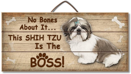 American Woodcrafters Shih Tzu is The Boss Reclaimed Pallet Wood Sign - Made in USA!