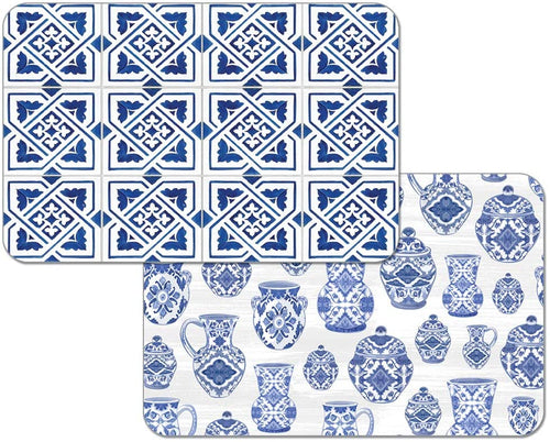 CounterArt Reversible Easy Care Placemats - Blue Delft Set of 4 - Made in The USA