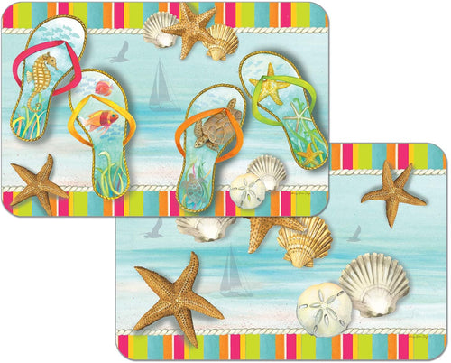 CounterArt Blue Sea Flip Flops Reversible Rectangular Easy Care Placemat Set of 4 Made in The USA