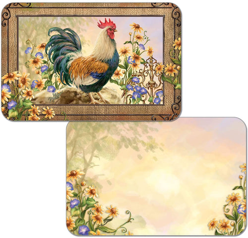 Counterart Country Charm Rooster Reversible Rectangular Wipe Clean Placemat Set Of 4 Made In The USA