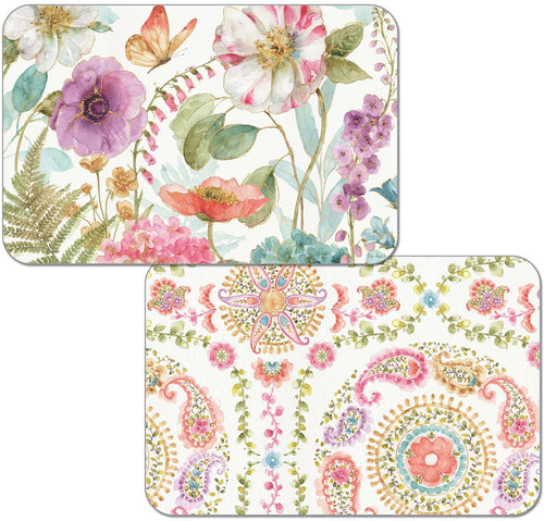 These CounterArt reversible placemats feature two beautiful coordinating designs, one on each side, giving you a mix and match option for your dining table. Made of proprietary BPA and PVC free plastic, these placemats are perfect for indoor or outdoor dining, and do not need to be laundered-simply wipe clean with warm soapy water. Packed in a set of 4, these double-sided placemats measure 17-1/8 by 11-1/4 inches and are proudly made in the USA. Choose from a wide variety of designs to find that perfect fit for different occasions. Also, look for additional CounterArt coordinating kitchen items such as glass cutting boards, trays, coasters, and anti-fatigue floor mats in the same design to create a unique home decor theme. Makes a great housewarming or hostess gift!