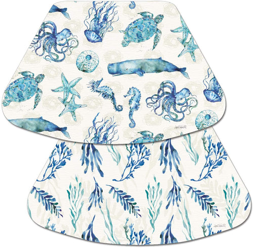 CounterArt Whale Turtle Octopus Starfish Seaweed Deep Sea Reversible Easy Care Set of Four Placemats, Made in The USA