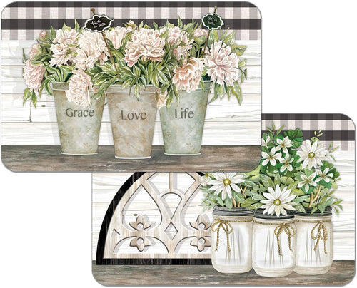 CounterArt Vintage Farmhouse Reversible Rectangular Placemat Set of 4