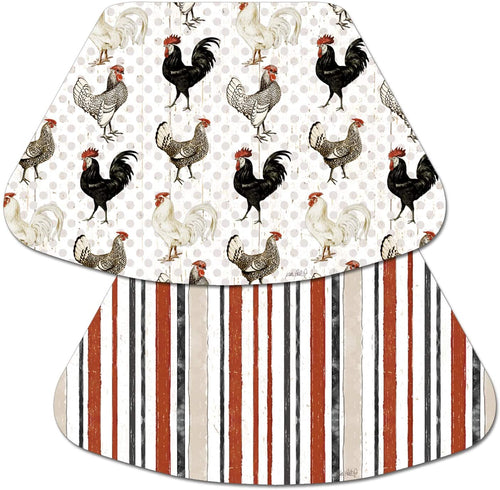 CounterArt Free Range Roosters and Stripes Reversible Easy Care Set of Four Placemats, Made in The USA