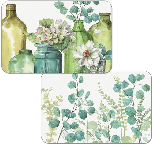 CounterArt Greenery Reversible Wipe Clean Plastic Placemat Set of 4 Made in The USA