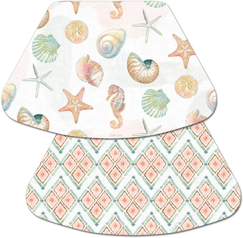 CounterArt Seashells Watercolor Coast Reversible Easy Care Set of Four Placemats, Made in The USA