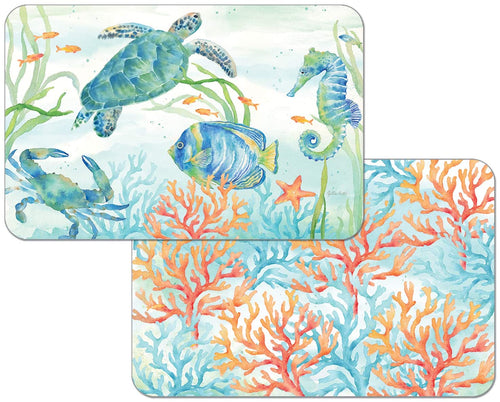 CounterArt Reversible Easy Care Placemats - Sea Life Serenade Set of 4 - Made in The USA