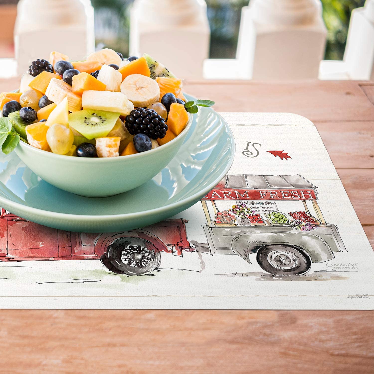 - Set of 4 CounterArt reversible placemats featuring two beautiful coordinating designs, one on each side